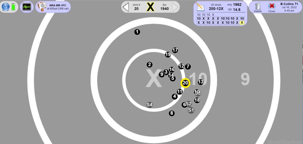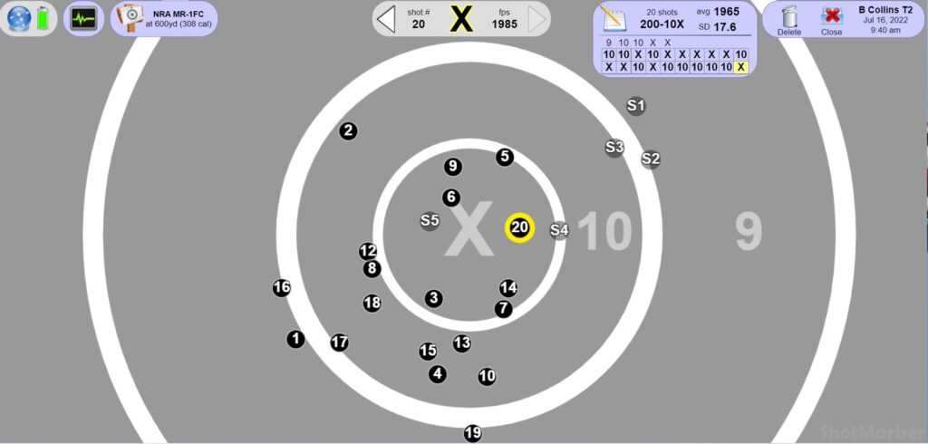 The best 1000 yard target shot to date at Reese Bottom. 200 19X shot by Nathan Howell during the first relay at the April 2024 Long Range Prone Match