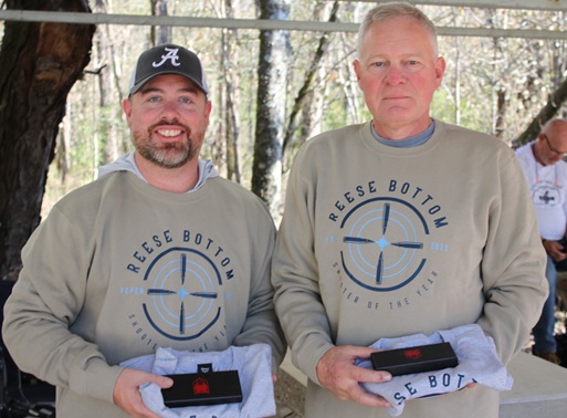 2025 Shooter of the Year Winners are left to right Barry Holcomb in the Open Division and Scott Parten in the FTR Division. These good shooters are required to participate in a minimum of seven matches during the year in the division to qualify for the title. Congratulations for your support of Reese Bottom.