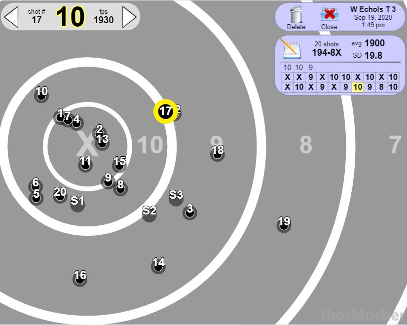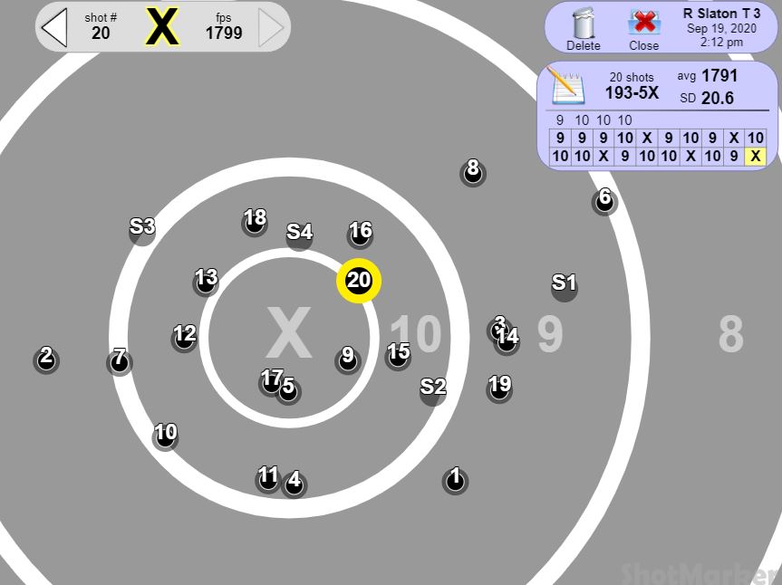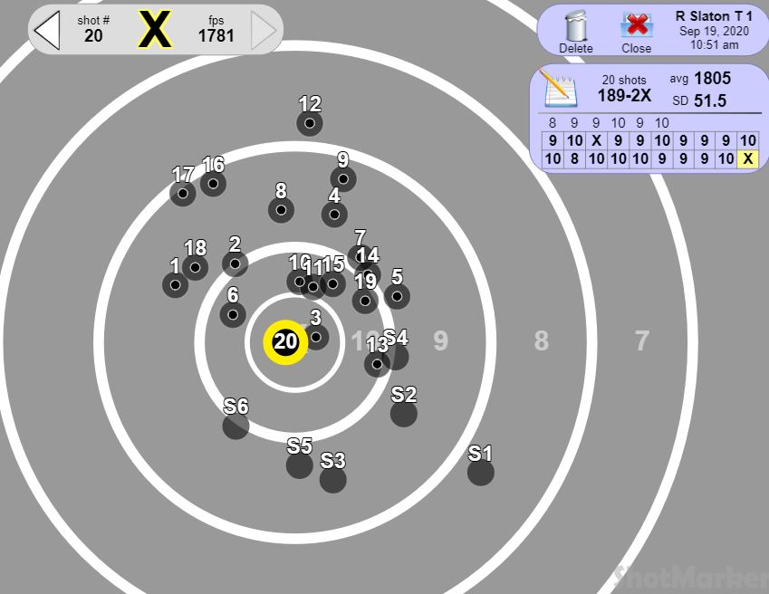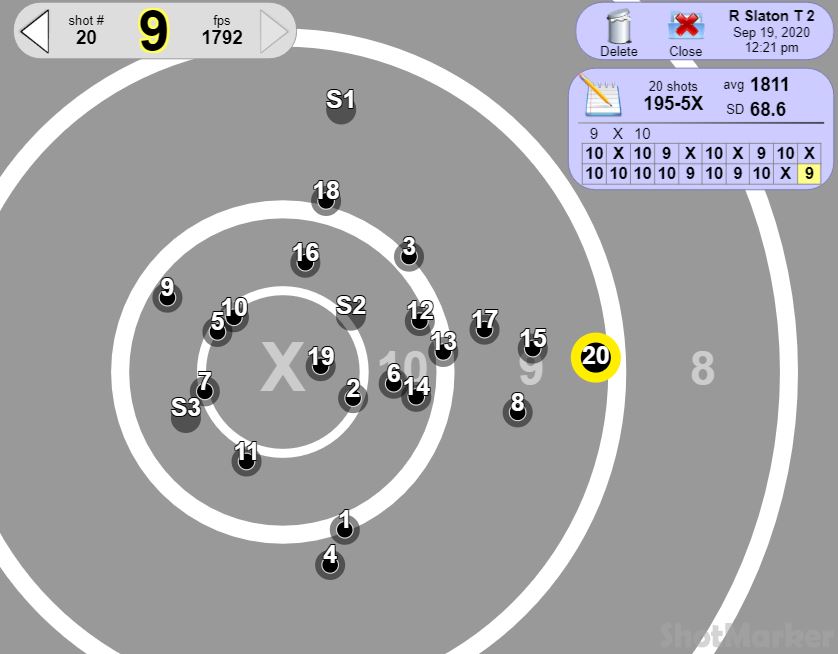 I’m relieved and ready to shoot for score. My 1st. and second relays had some problems that I will let you figure out. Relay 1 I shot 19 rounds but had 20 scores and a SD of 51.5 relay 2 I shot 18 rounds and had 20 scores and a SD of 68.6, relay 3 I shot 20 rounds and had 20 rounds scored and a SD of 20.6?